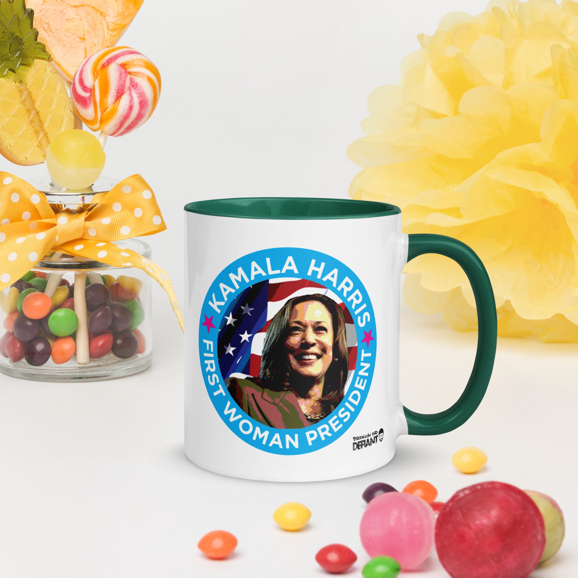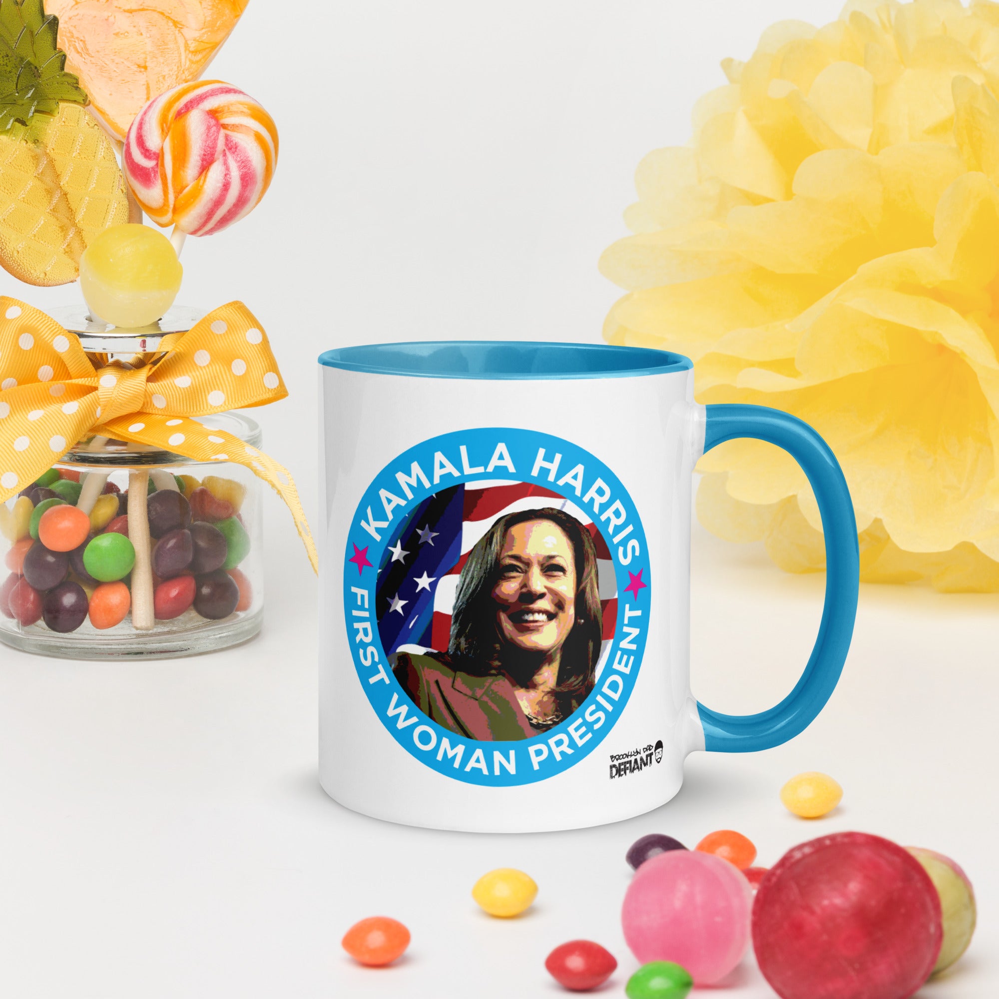 Celebrate this momentous year with a mug celebrating Kamala as our 1st woman president! What better way to put it to the other side than with Kamala's smiling face as you sip your favorite beverage!