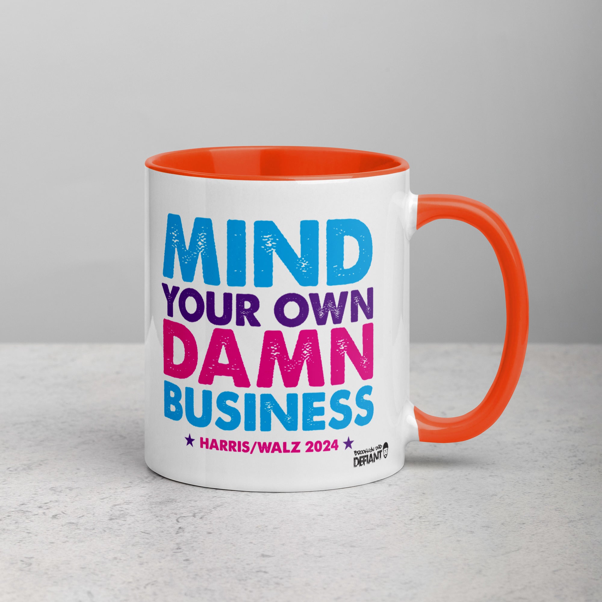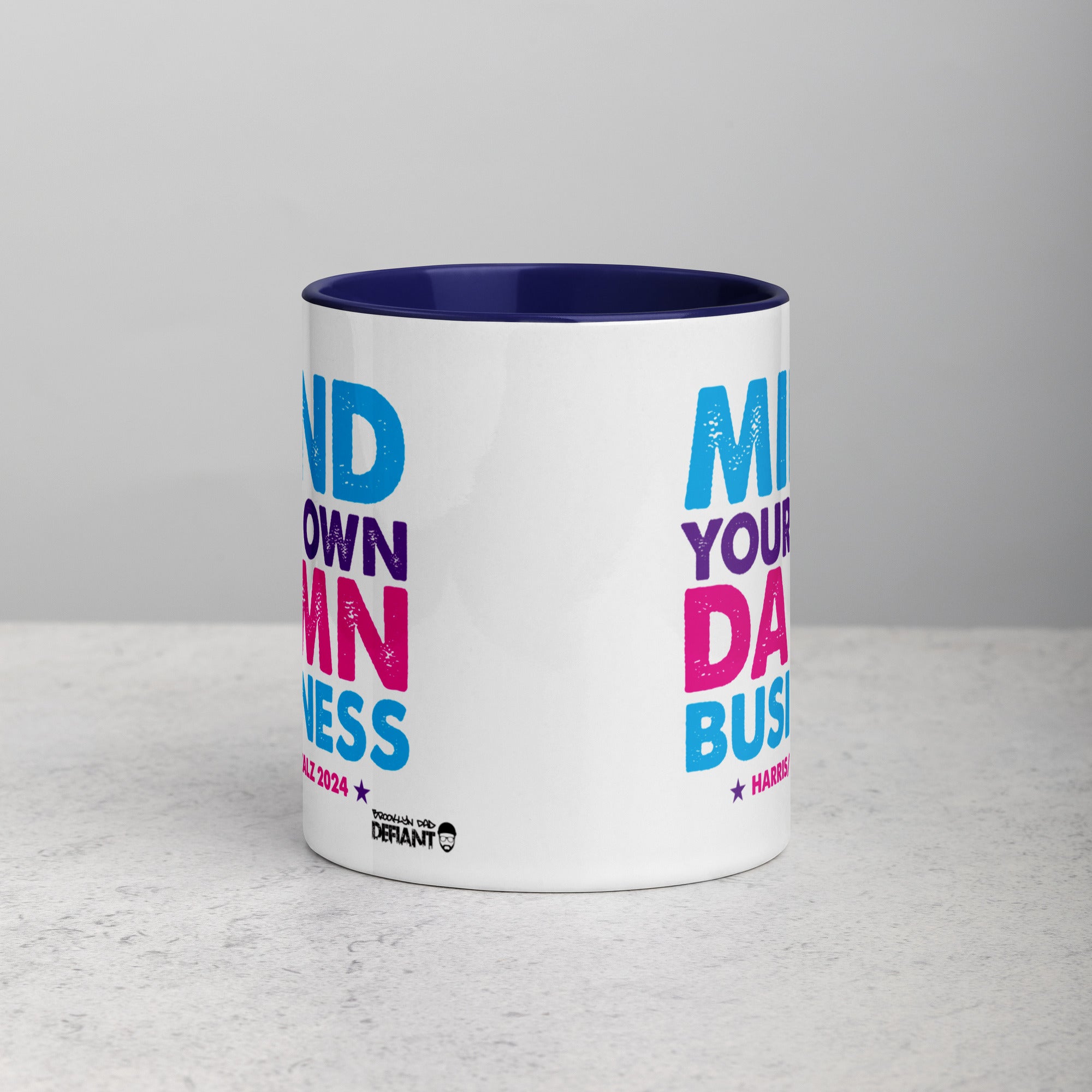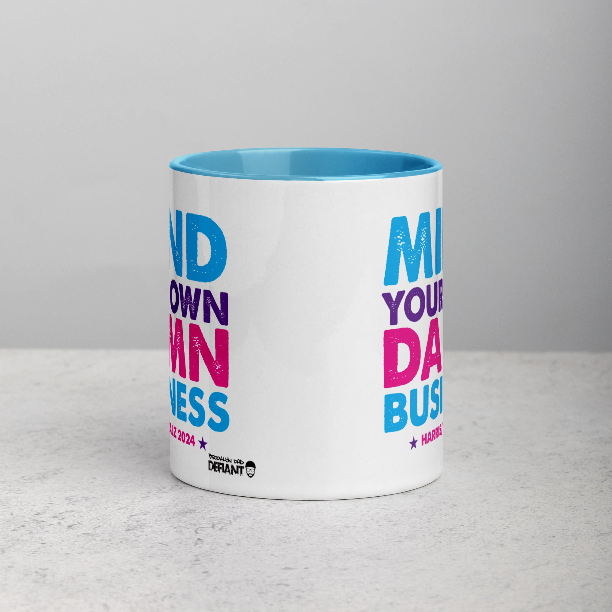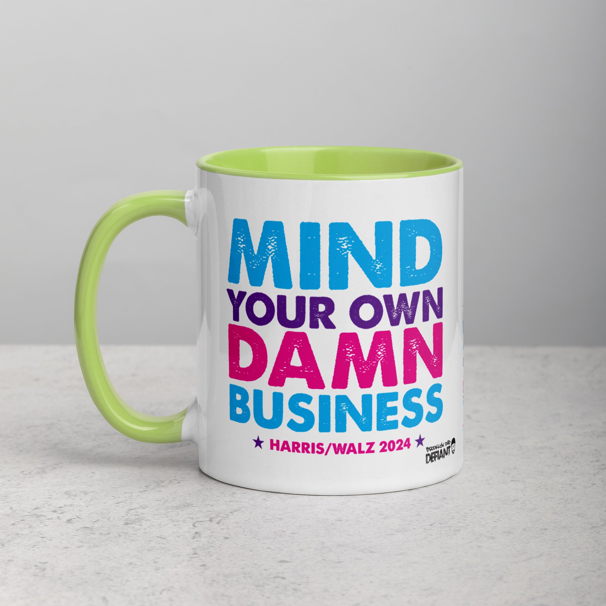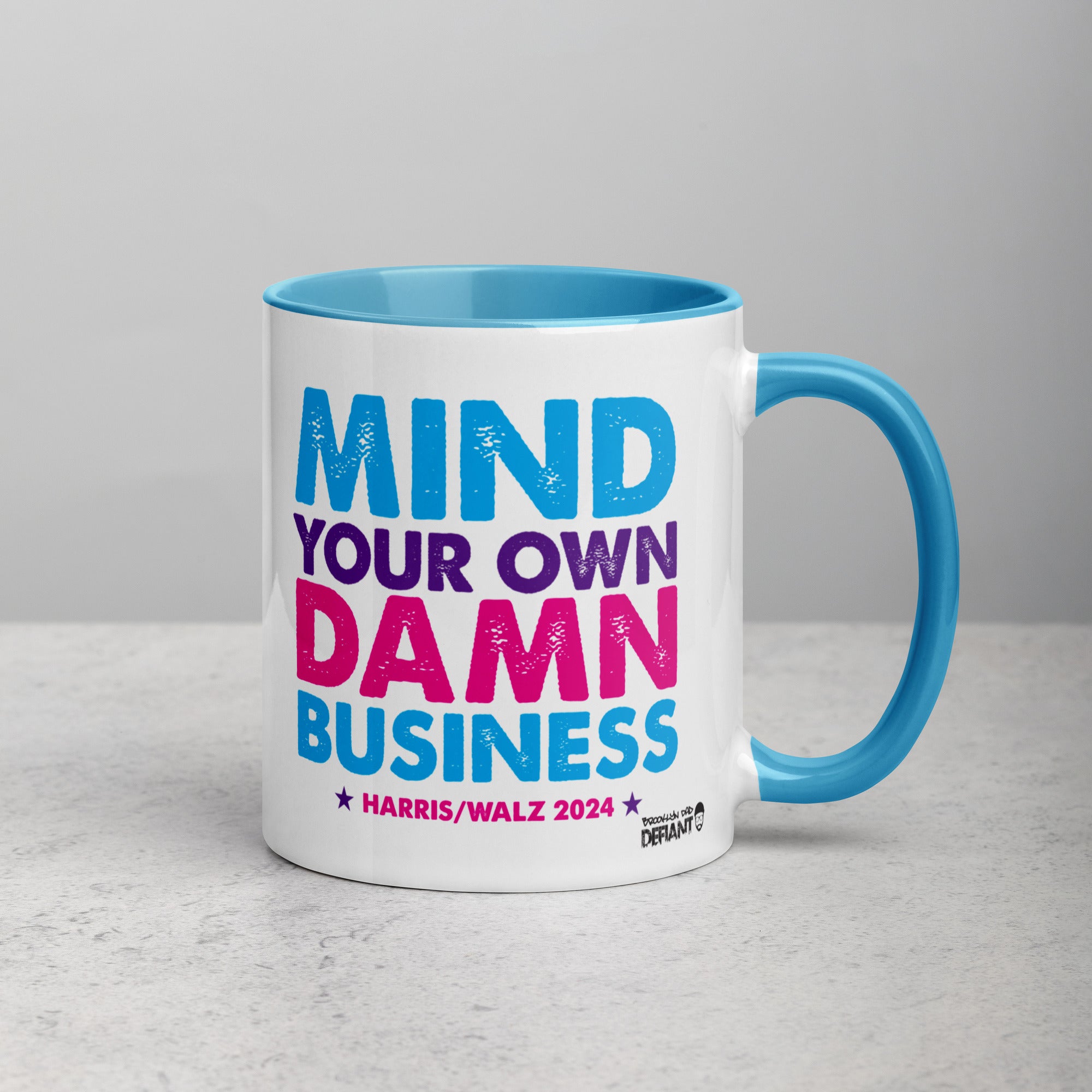 • Ceramic 11 oz mug dimensions: 3.79″ H 3.25″ D. Colored rim, inside, and handle. Dishwasher and microwave safe